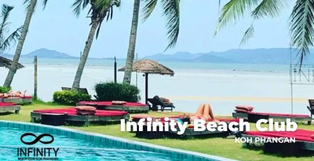 Harmony Beach Club — a luxury beachfront club on Bantai Road, Koh Phangan, with an infinity pool, international sound system, and open-air dance floor. Doubles as a daytime beach club and sunset bar outside of event days.